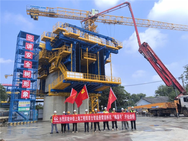 8月4日,虽然第一个可能的混凝土开始抽水,但第一个智能的悬臂上国铁路上海工程局“ Meixi”开始正式使用,倾倒了120米的Meixi Super Bridge的120米主跨度,这是120米的Main Span Bridge,这也是第一台智能的悬臂式机器。