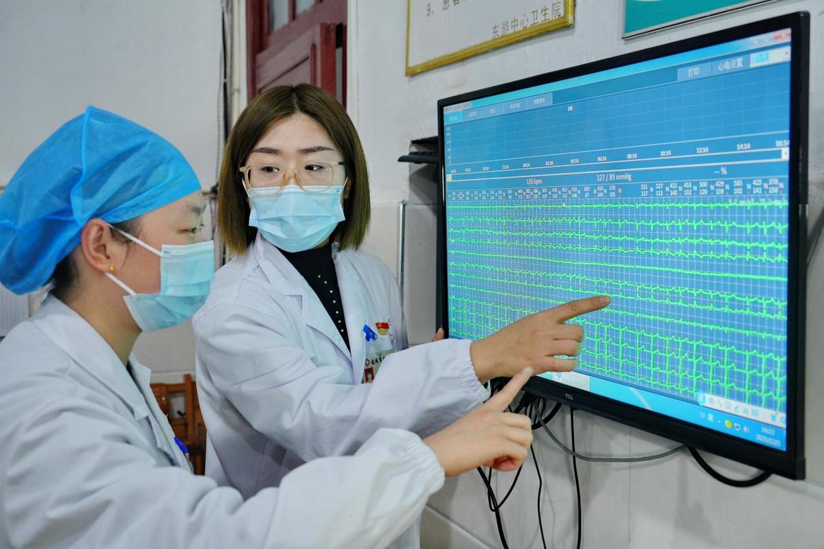 12月5日,建瓯市东佑中心卫生院医护人员在线监测患者心电图情况通过24小时动态远程监控系统。 (邱汝泉 摄)