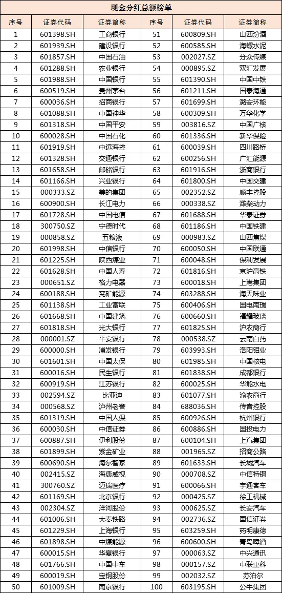 2025年上市公司的现金股息清单是基于现金股息数据的目的,并综合地考虑了多维因素,最终制定了三个总现金股息,股息付款率和股息率的三个清单,每份列表100家公司。