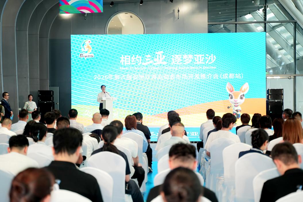 To further promote the development of the 6 -6th Asian Beach Games market in 2026 (from therea as Sanya Asia Beach Games), and promote the link and coordinated development of Sanya Asia Beach Games and the Chengdu World Games, in the afternoon of September 26, the "Meet in Sanya and Chase Dreams Asian Beach Games" 2026 Sixth Asian Beach Games " Cooperation Opportunity Promotion Conference (Chengdu Station) Chengdu Tianfu Road Performing Arts Center.大约有60位客人参加了包括Sanya Asia-Shaan协会执行委员会,成都世界运动会执行委员会,知名公司和主要媒体参加。